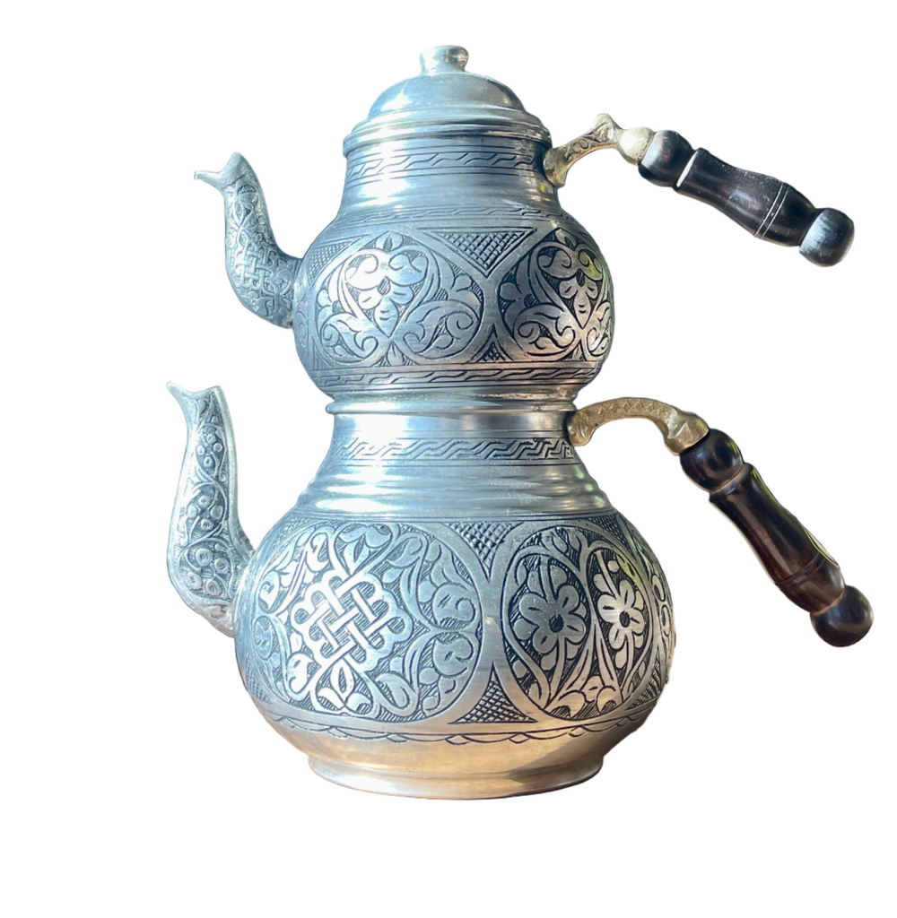Ağır işlemeli bakır çaydanlık, geleneksel el sanatlarının en zarif örneklerinden biridir. Tamamen...