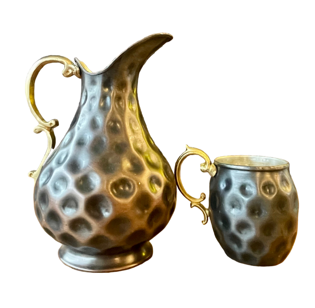 Kampanyalı Bakır El Yapımı Gamzeli Sürahi & Bardak Seti