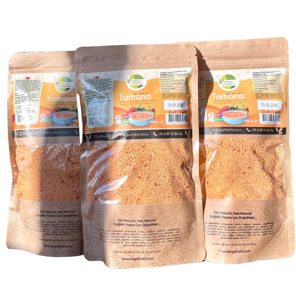 Ev yapımı tarhana katkı maddesi olmadan üretilen Anadolu’da yüzyıllardır kullanılan klasik bir Türk yemeğidir. İçerisindeki probiyotikler sayesinde bağışıklık sistemini güçlendirir.
